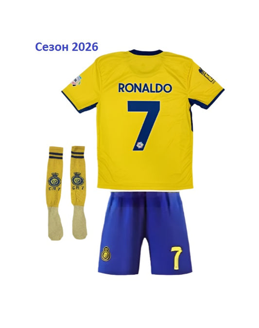 2026 Детски футболен екип на Роналдо 7, жълт с чорапи RONALDO Al Nassr New