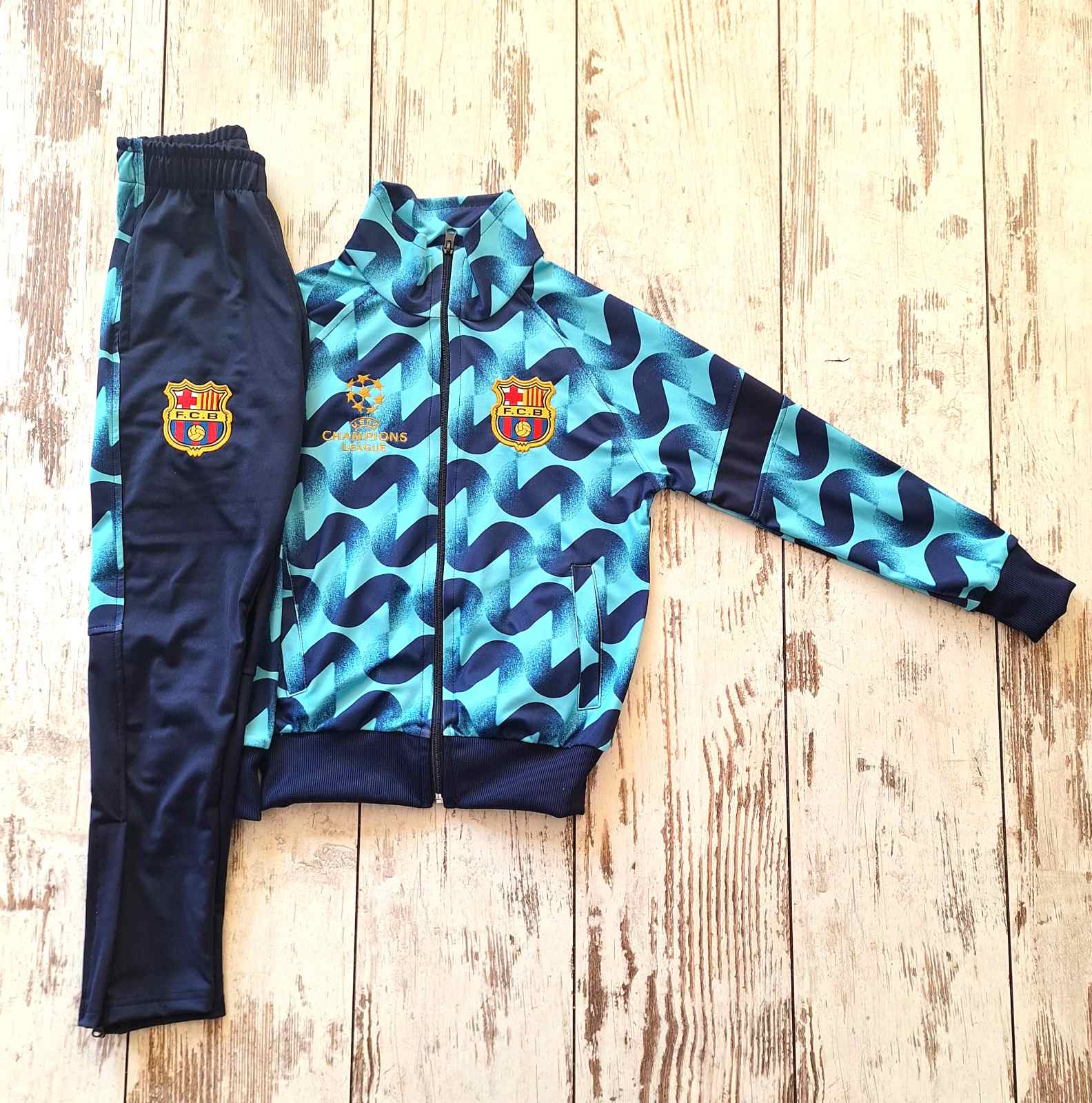 Детски спортен Анцуг на Барселона с дълъг ръкав 2025 Син Шарен