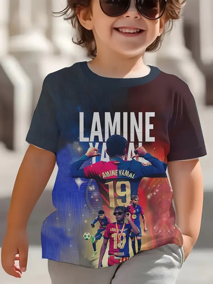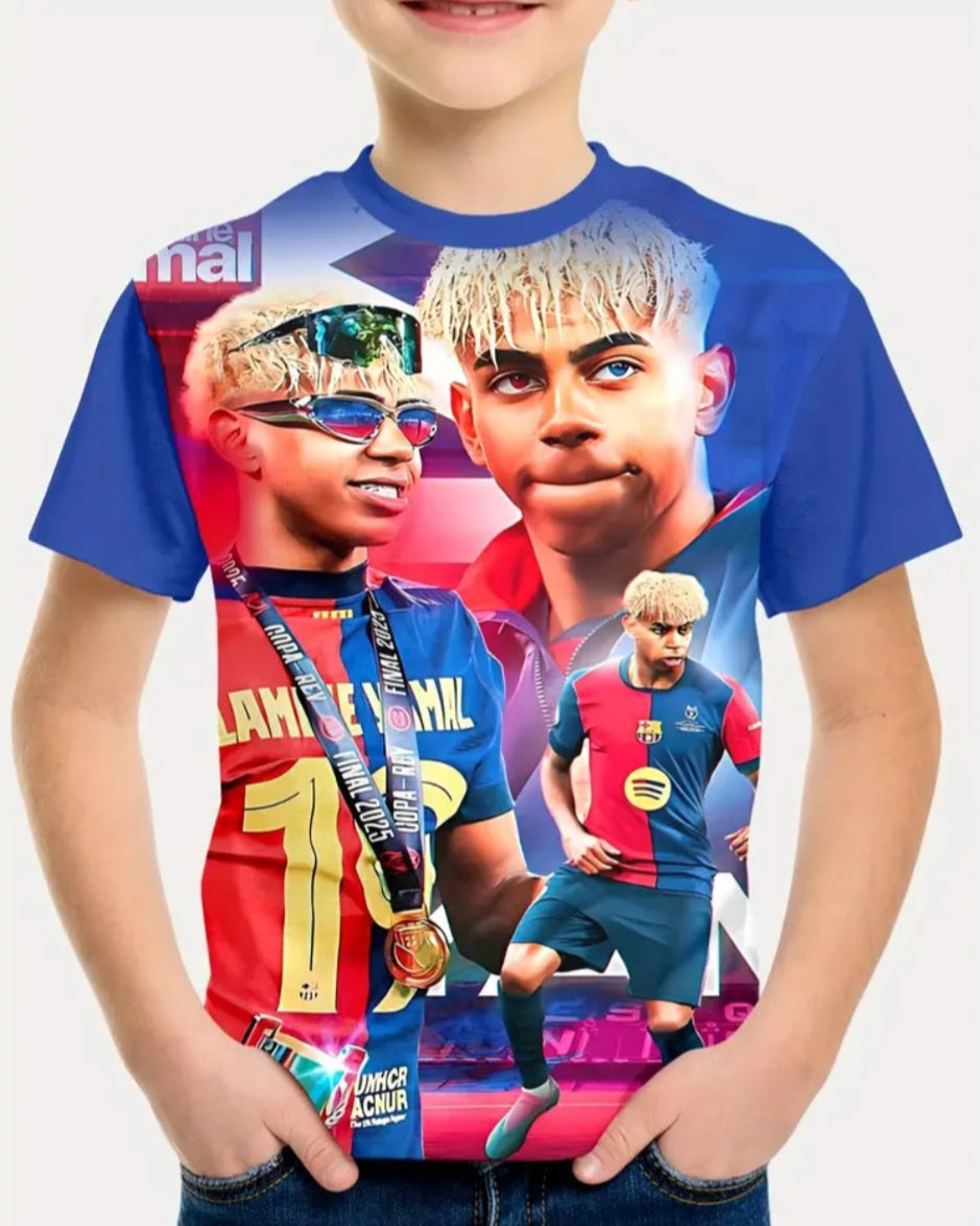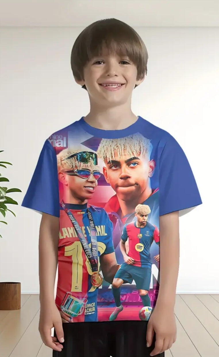 2026 Детска спортна тениска на Ямал футболна Барселона LAMINE YAMAL Синя