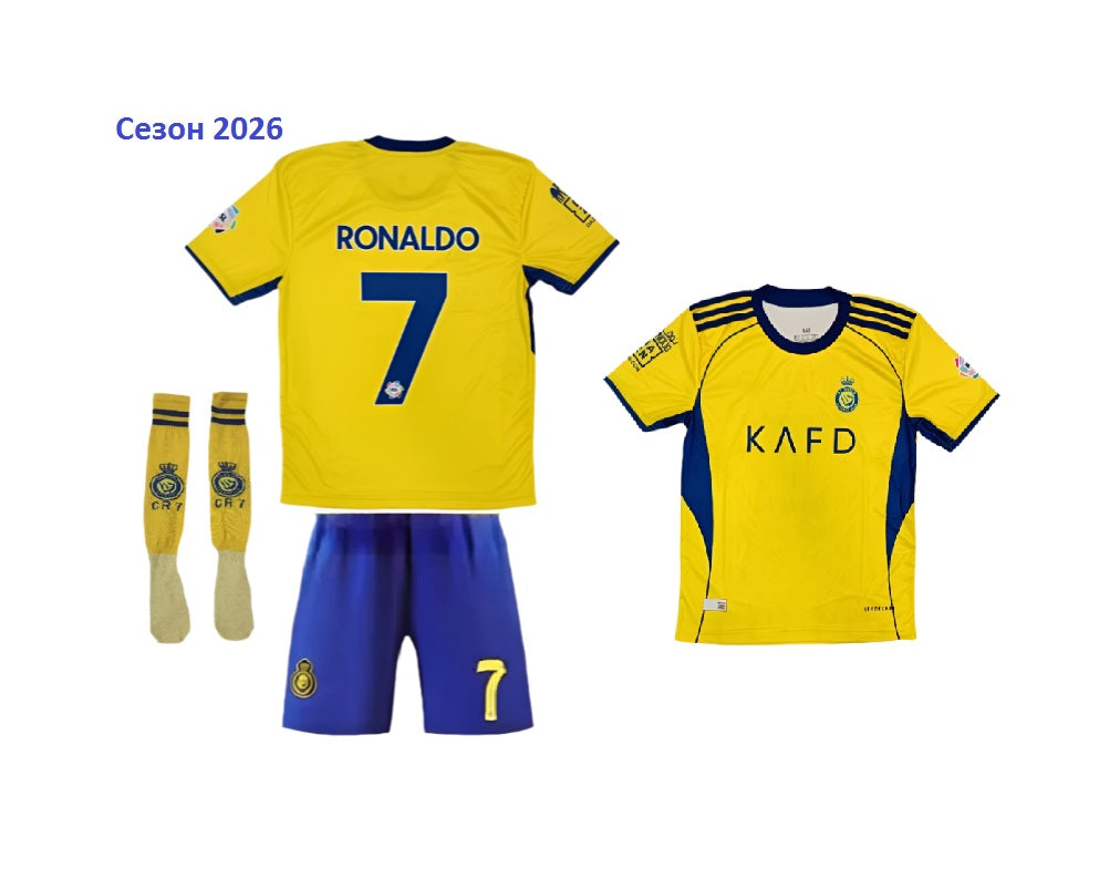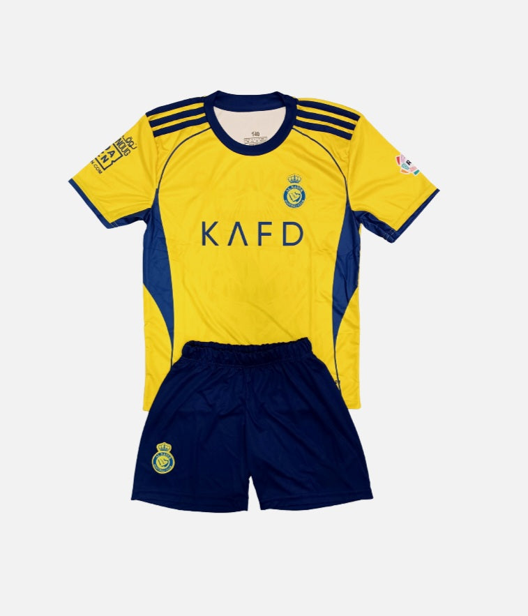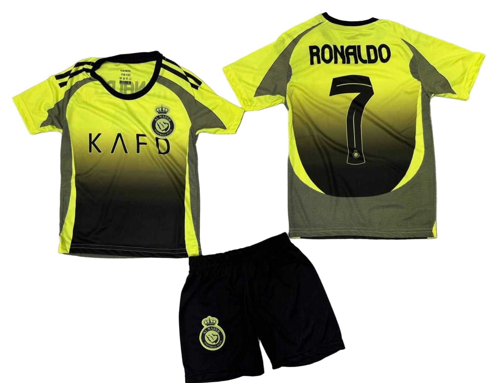 Новия детски футболен екип на Роналдо на Ал Наср за сезон 2026 включва: