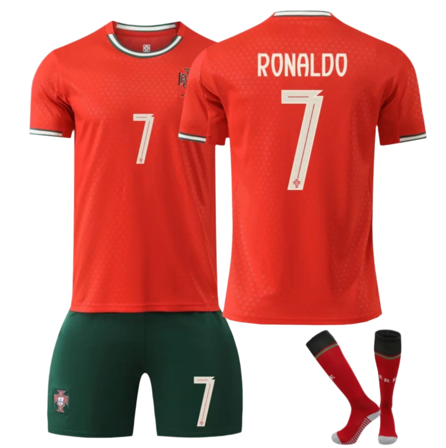 2026 Детски спортен екип на CR7 Роналдо 7 с чорапи, ПОРТУГАЛИЯ Зелен Титулярен RONALDO