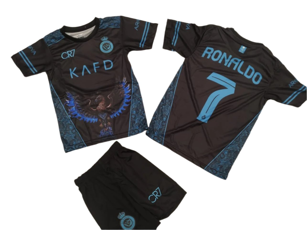 Детски спортен екип на Роналдо 7, CR7 Черен с чорапи 25/26 RONALDO
