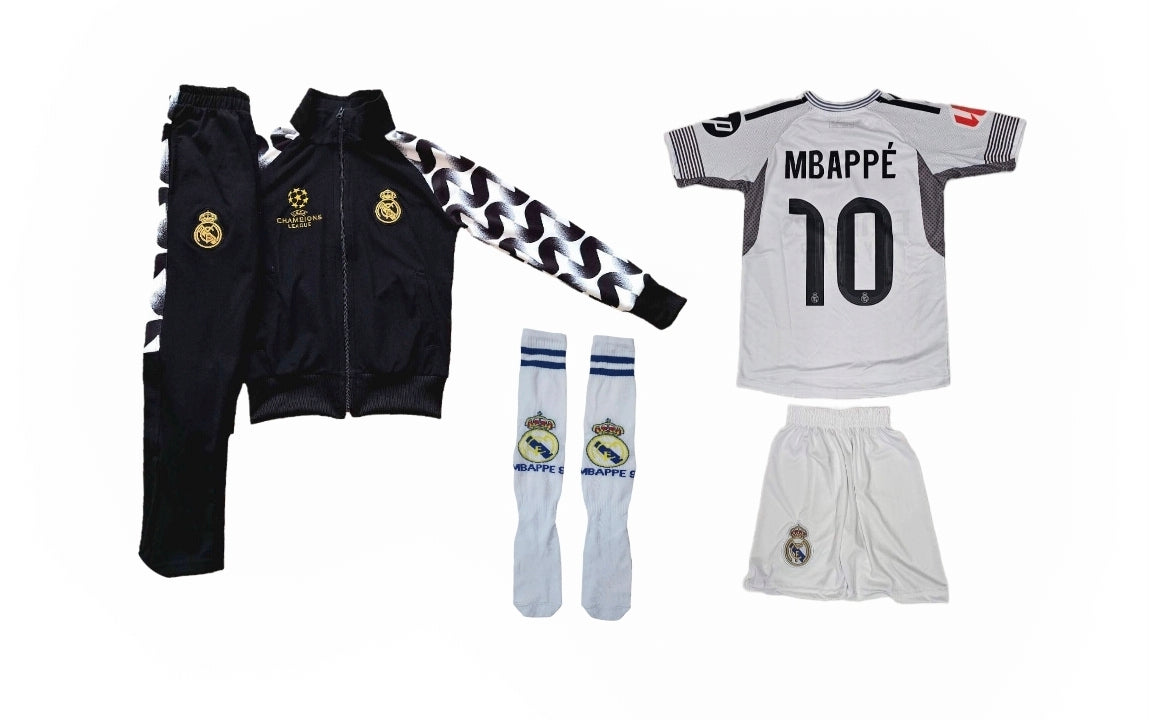 2026 Детски спортен екип на Мбапе 10, Бял - черен Спортен суитчър и анцуг MBAPPE 10 Real Madrid