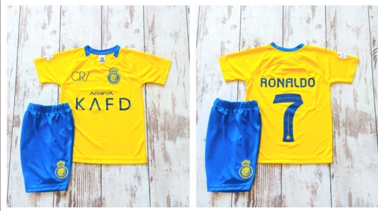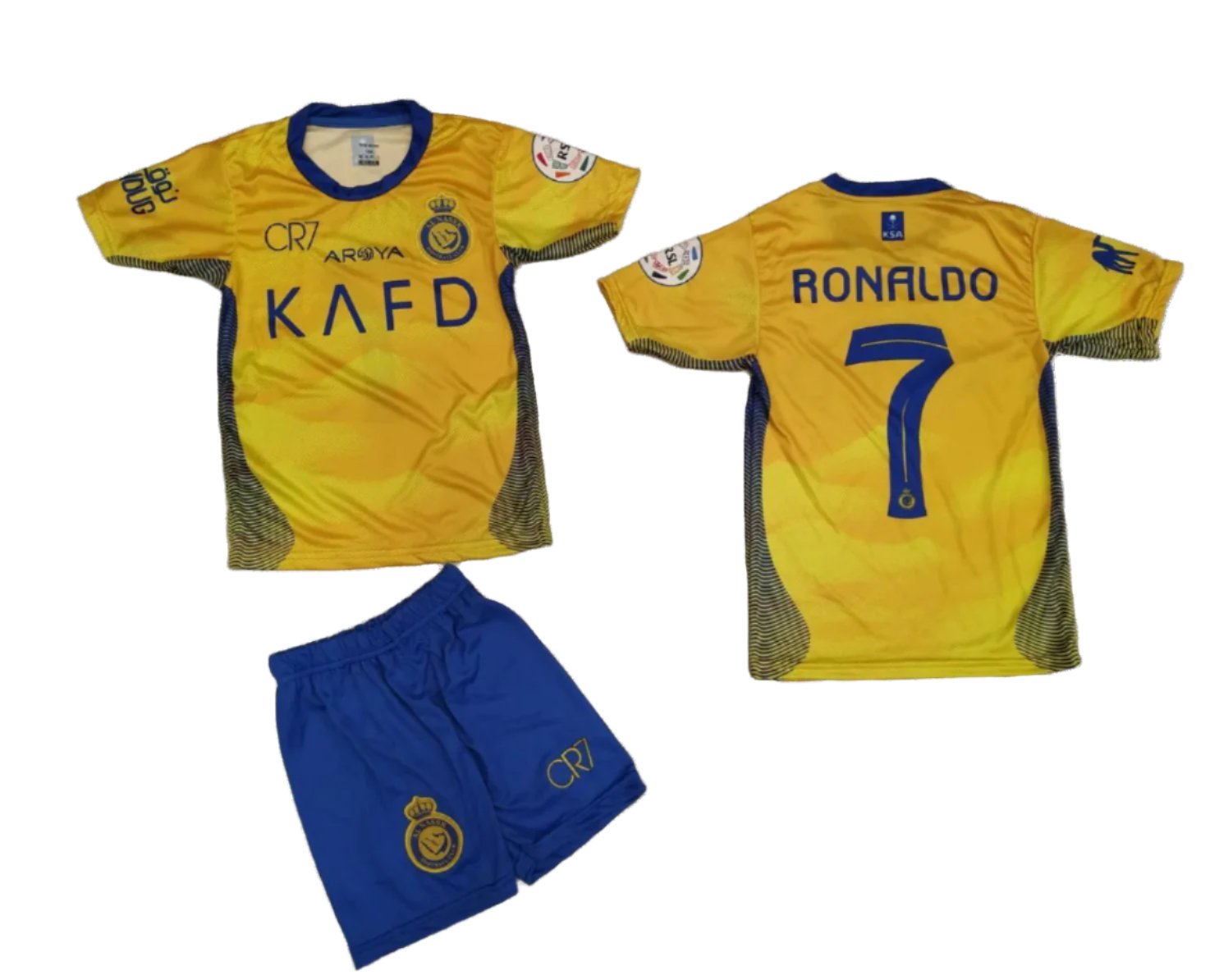 Детски спортен екип на Роналдо 2025 футболен с чорапи CR7 Жълт ал Насър