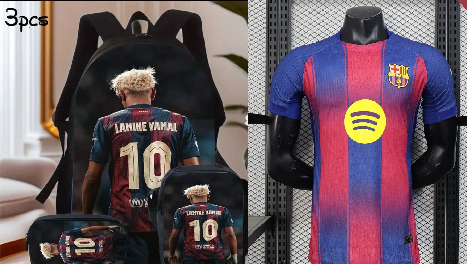 Комплект Раница от 3 части + Екип Lamine Yamal Ямал Барселона Титулярен