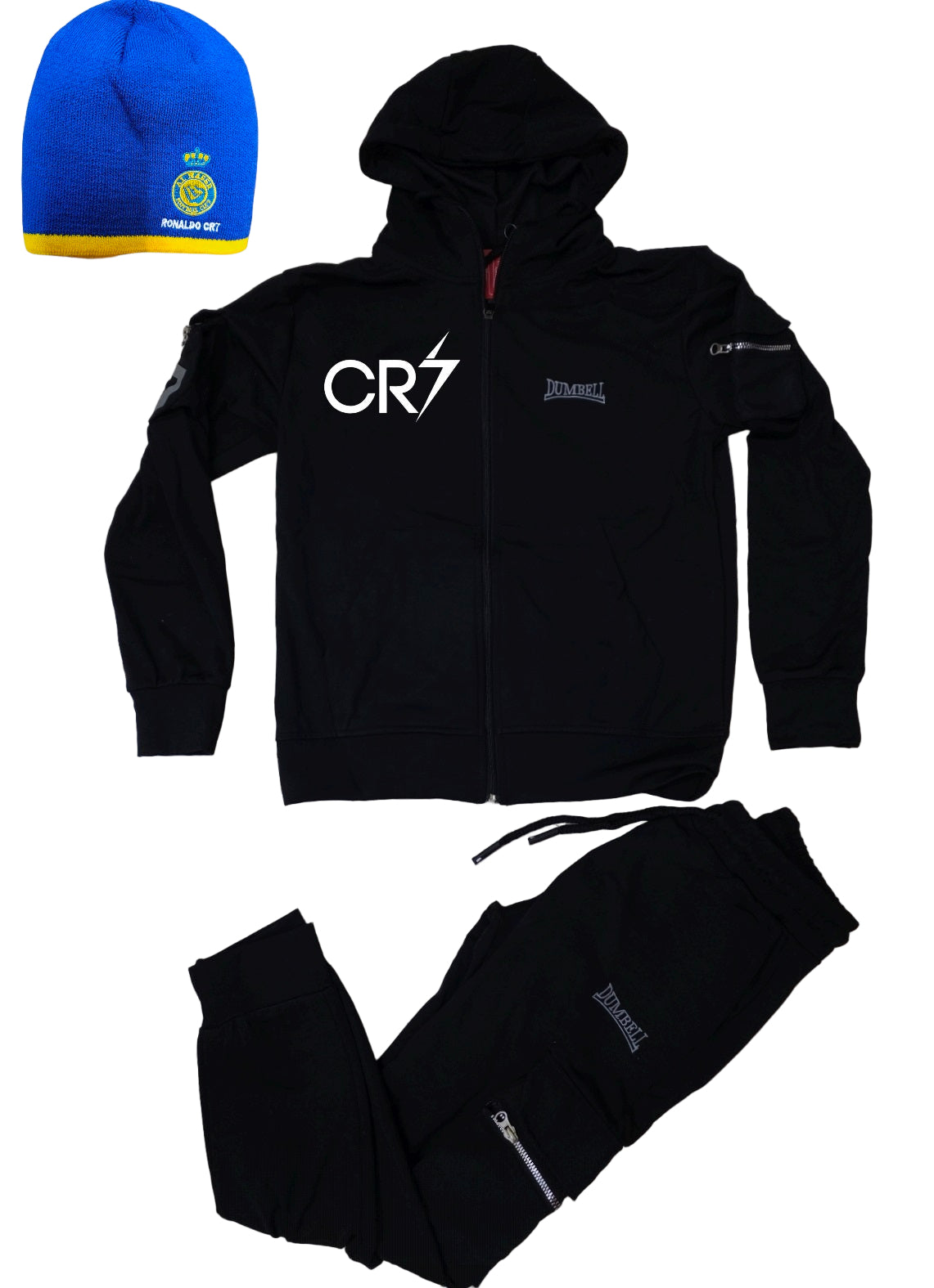 Детски Сет Шапка + Анцуг на Роналдо 7 Черен КР7 Роналдо с Качулка